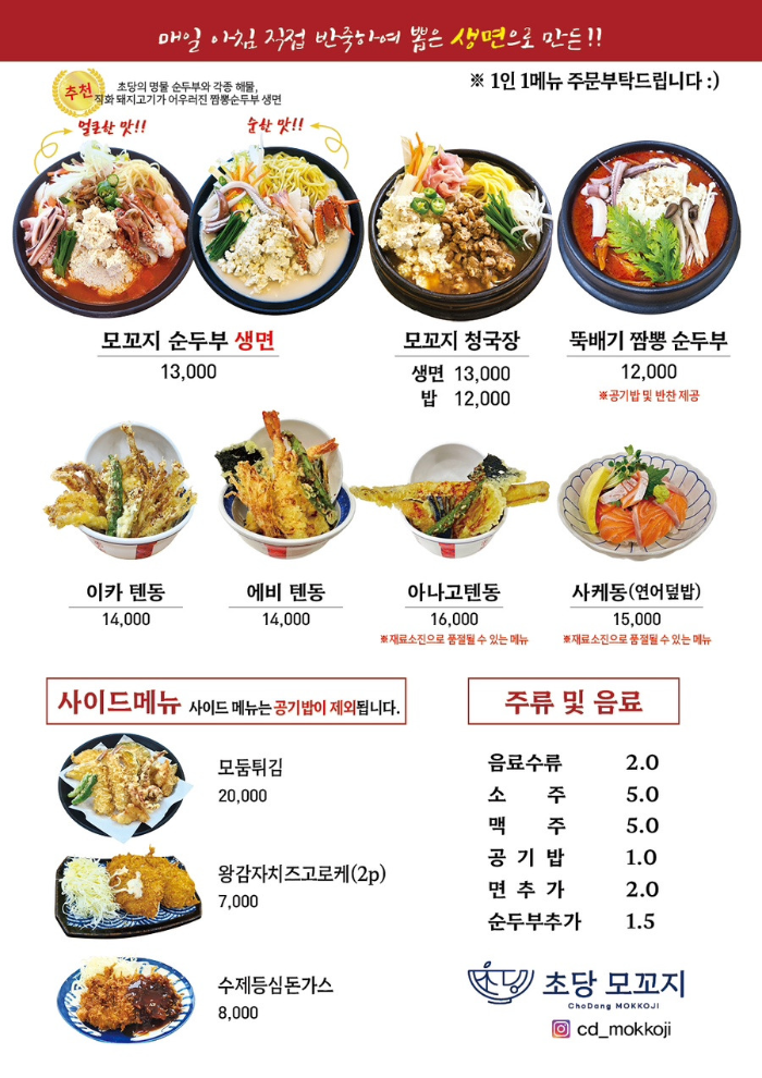 - 모꼬지 순두부 생면 13,000원 (추천)